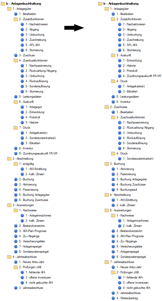 Das Löschen von nicht aktivierten Anlagegütern bzw. nicht passivierten Zuschüssen, welche Teile einer Umbuchung sind, ist nun nicht mehr möglich, selbst wenn die Umbuchung bereits storniert ist. Es ist nun zwingend eine Buchung erforderlich.