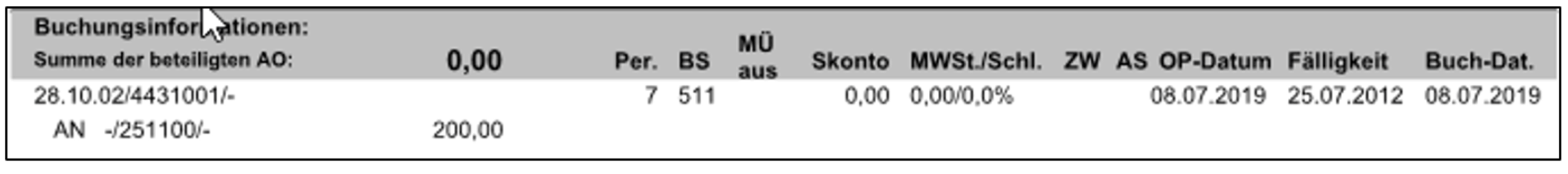 Die Buchungsinformation ist in jedem Fall „SOLL an HABEN“ zu lesen. Der angezeigte Buchungswert, entspricht dem in der Buchungsmaske eingegebenen Wert.