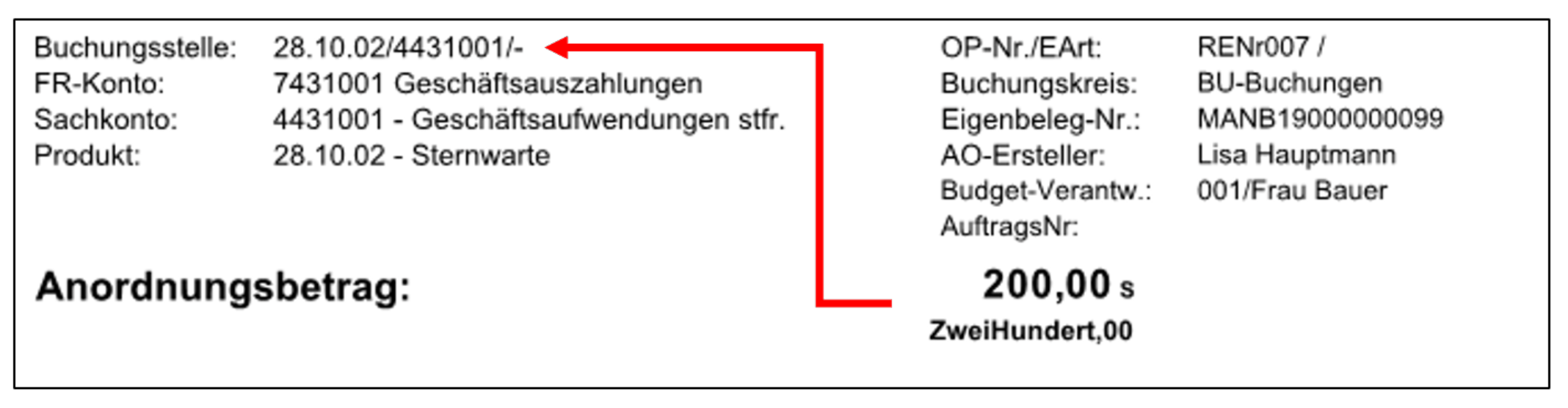 36 - Anordnung Der Anordnungsbetrag bezieht sich immer auf die Buchungsstelle (Nicht auf die Gegenbuchungsstelle). Dies kann dazu führen, dass der Wert negativ dargestellt wird, obwohl er vom Anwender positiv eingegeben wurde. Das Programm rechnet je nach Soll/Haben-Kennzeichen bei Soll-Konten= Soll- Haben UND bei Haben-Konten=Haben-Soll.