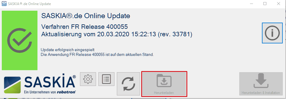Hintergrund ist, das der OnlineUpdate-Client aus R54 noch mit dem Sicherheitsprotokoll TSL 1.0 arbeitet und dieses Protokoll auf unsere zentraler Bereitstellungsserver service.saskia.de zu dem genannten Termin abgeschaltet wird. Durch die Abschaltung des Protokolls ist der alte Update-Client nicht mehr in der Lage, das Update herunterzuladen und es erscheint eine Fehlermeldung.