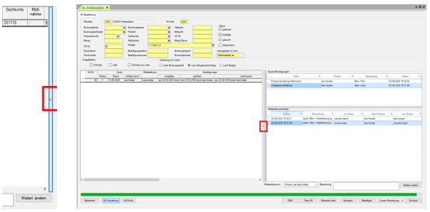 Die Tabellenansicht der Anordnungsverwaltung wurde optional geteilt. Einerseits werden wie gewohnt die bisherigen AO-Angaben dargestellt. In der „aufklappbaren“ 2. Hälfte werden alle Angaben zu den oben beschriebenen lizenzpflichtigen Zusatzbestätigungen ausgewiesen.