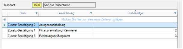 Menü 36 Anordnung Der digitale Anordnungsworkflow im SASKIA®.de-IFR wurde um ein neues lizenzpflichtiges Modul „Zusatzbestätigung“ erweitert. Mit Hilfe dieses Modules ist es möglich neben den gesetzlich vorgegeben AO-Stufen (sachlich, rechnerisch, Anordnung) bis zu 10 weitere verschiedene verwaltungsspezifische Zeichnungsstufen flexibel abzubilden. Diese zusätzlichen Zeichnungstufen können individuell eingerichtet werden.