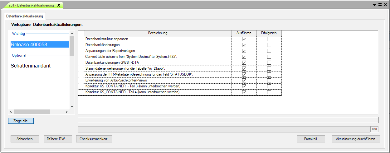 Datenbankstruktur anpassen Interne Anpassung der Datenbankstruktur in der Datenbank. Dieser Releasewechselpunkt hat keine Auswirkung auf den aktuellen Datenbestand.