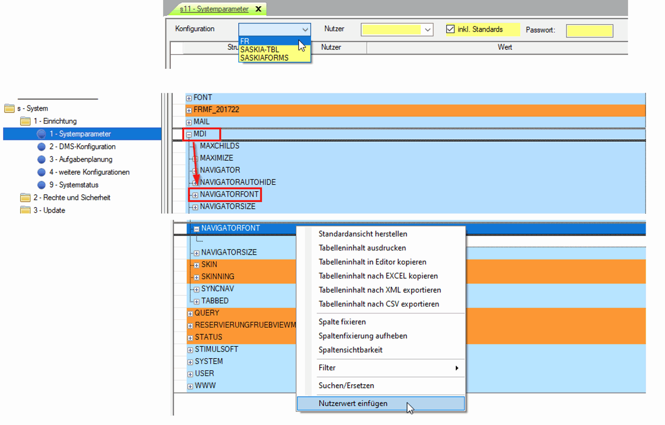 Ein Fehler im Windows führte dazu, dass die Funktion des Repaint Allociert zu viele Font-Handles produziert. Wenn das Windows-System keine Ressourcen mehr frei hat, kommt es zum Fehler "OutOfMemory". Der Fehler tritt sehr häufig auf, wenn ein Nutzer/Anwender in der IFR-Menüübersicht einen großen Favoritenbaum eingerichtet hat. Es wurde ein Schalter eingebaut: MDI / NAVIGATORFONT, der Nutzerspezifisch hinterlegt werden kann. Nutzer, welche sich für Ihre tägliche Arbeit einen Favoritenbaum aus IFR-Menüanwendungen erstellt haben, können ab sofort mit der neuen Schalterfunktion in den Systemparametern der Systemverwaltung erreichen, dass es nicht mehr zur Fehlermeldung "OutOfMemory" und damit zum vollständigen IFR-Programmabsturz kommt. Je größer der Favoritenbaum war/ist, umso eher tritt der Fehler auf. Modus 1 : der gesamte Baum wird fett dargestellt --> Fehler tritt nicht mehr auf Modus 2 : der gesamte Baum wird normal dargestellt --> Fehler tritt nicht mehr auf --> im Modus 1 und 2 kann nicht mehr die Node-spezifische Font genutzt werden, wie es der Standard (Modus 0) ist, weil genau dies die Ursache des Fehlers ist/war! Mögliche Werte 0 alles wie gehabt --> Standard --> Fehler kann auftreten