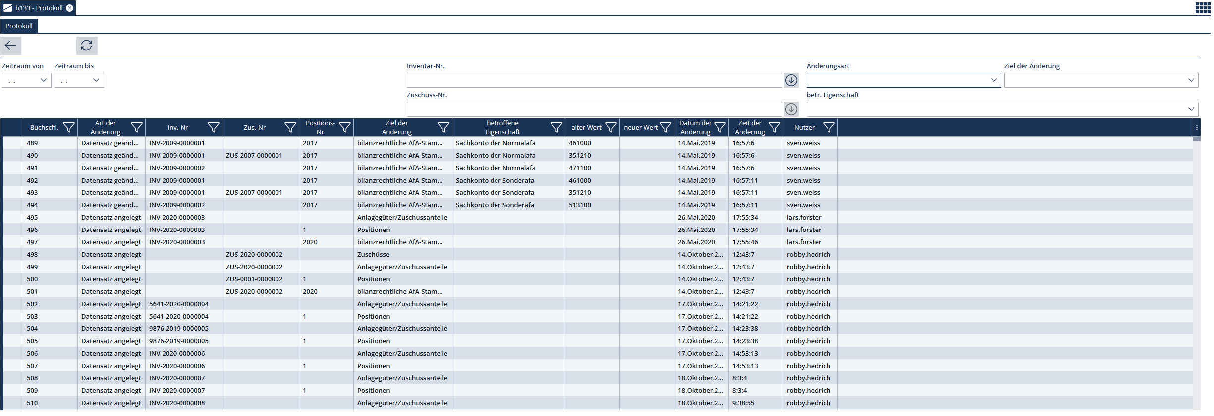 Wie sind vorgenommene Datenänderungen in der Anlagenbuchhaltung nachvollziehbar ?