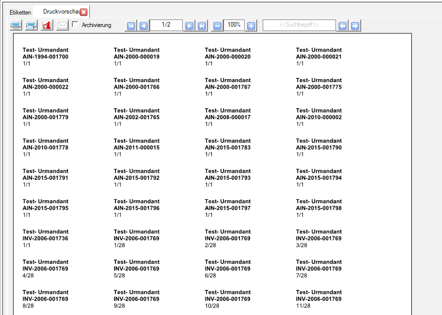 Die Etiketten zu den ausgewählten Inventargütern werden gedruckt.