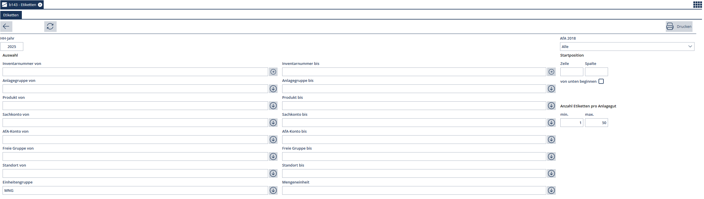 | Anzahl Etiketten pro Anlagegut | Festlegung wieviele Etiketten pro Anlagegut gedruckt werden sollen |