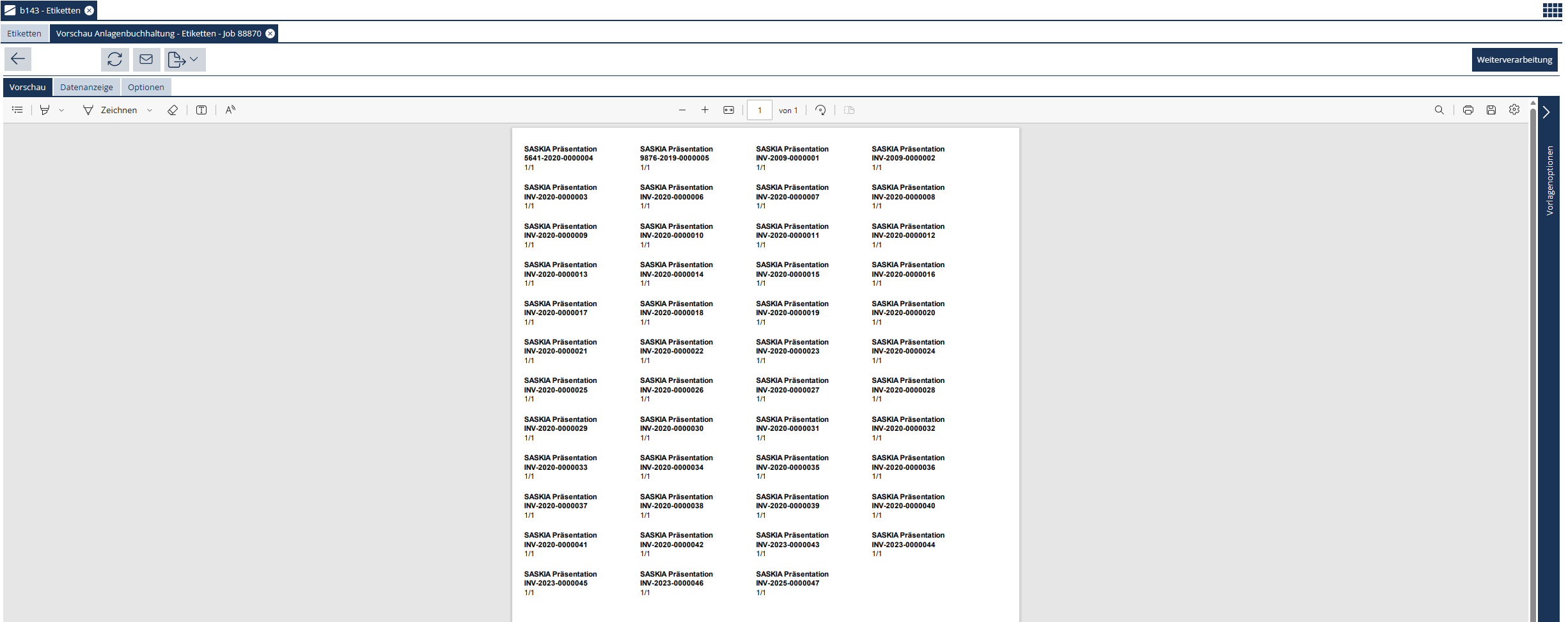 Druck von Etiketten für die Kennzeichnung von Inventargütern