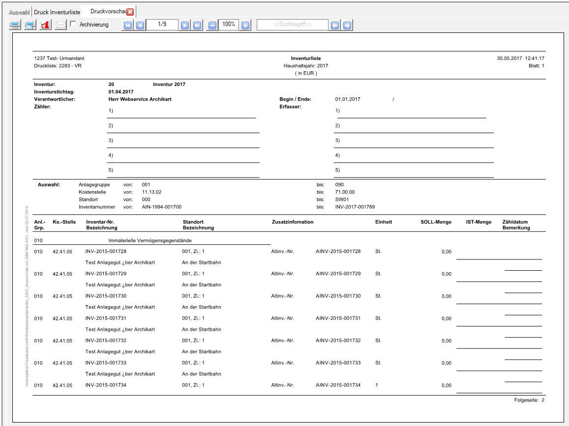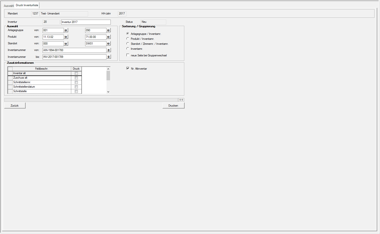 Einschränkung der zu druckenden Inventurliste auf bestimmte Anlagengruppen