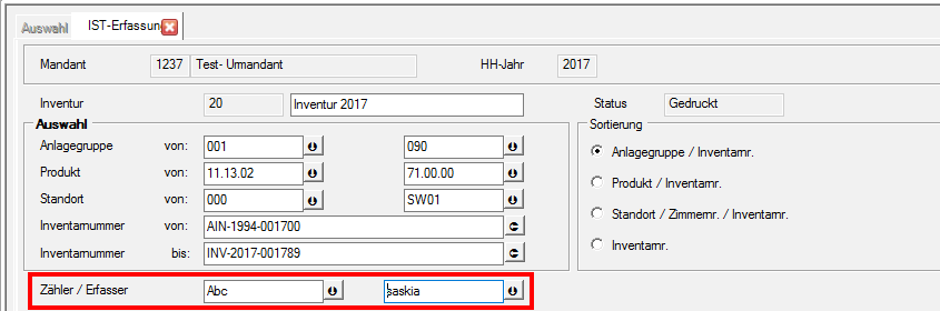 | Hat bei der nächsten Position ein anderer gezählt bzw. erfasst müssen die Auswahlfelder entsprechend geändert werden |  |