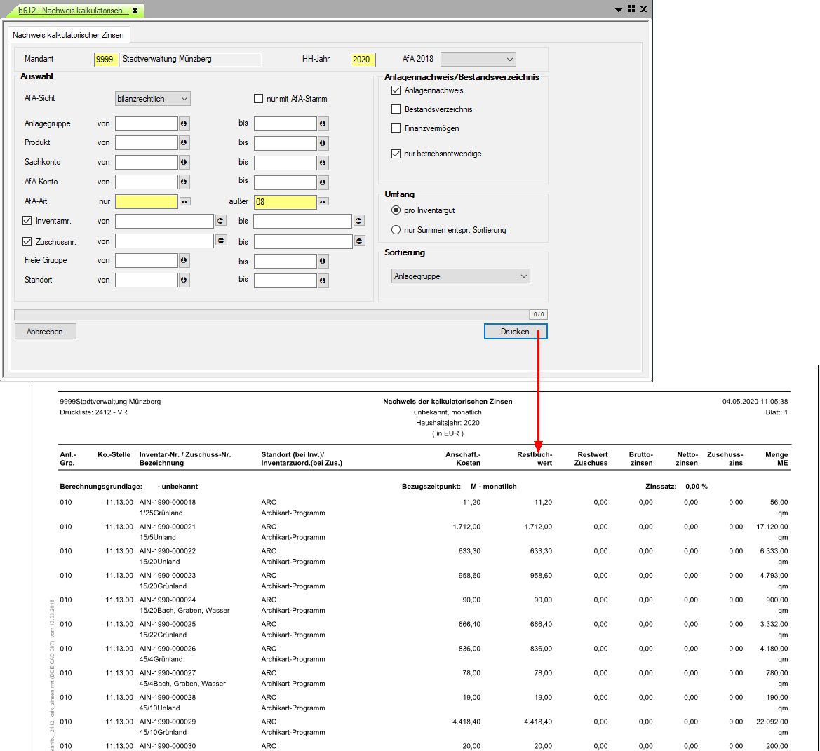 Ausgabe der Liste zum Ausweis der kalkulatorischen Zinsen