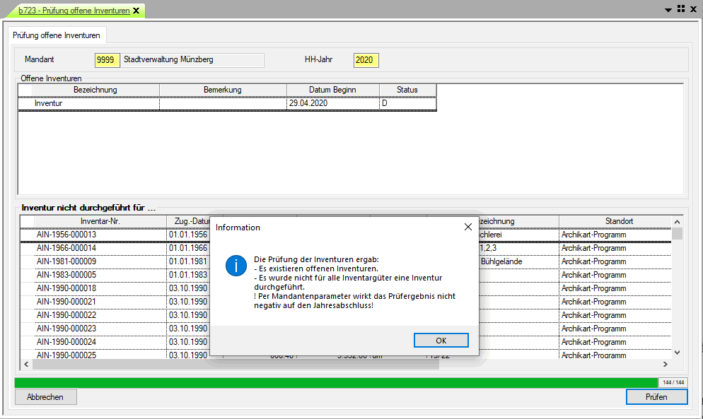 Auch wenn keine Inventuren mit dem Programm durchgeführt werden, ist dieser Prüfpunkt zwingend zu bearbeiten - siehe auch Schalter A37.