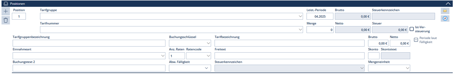 In diesem Teil der Maske können in der Rechnung die einzelnen Rechnungspositionen erfasst werden.