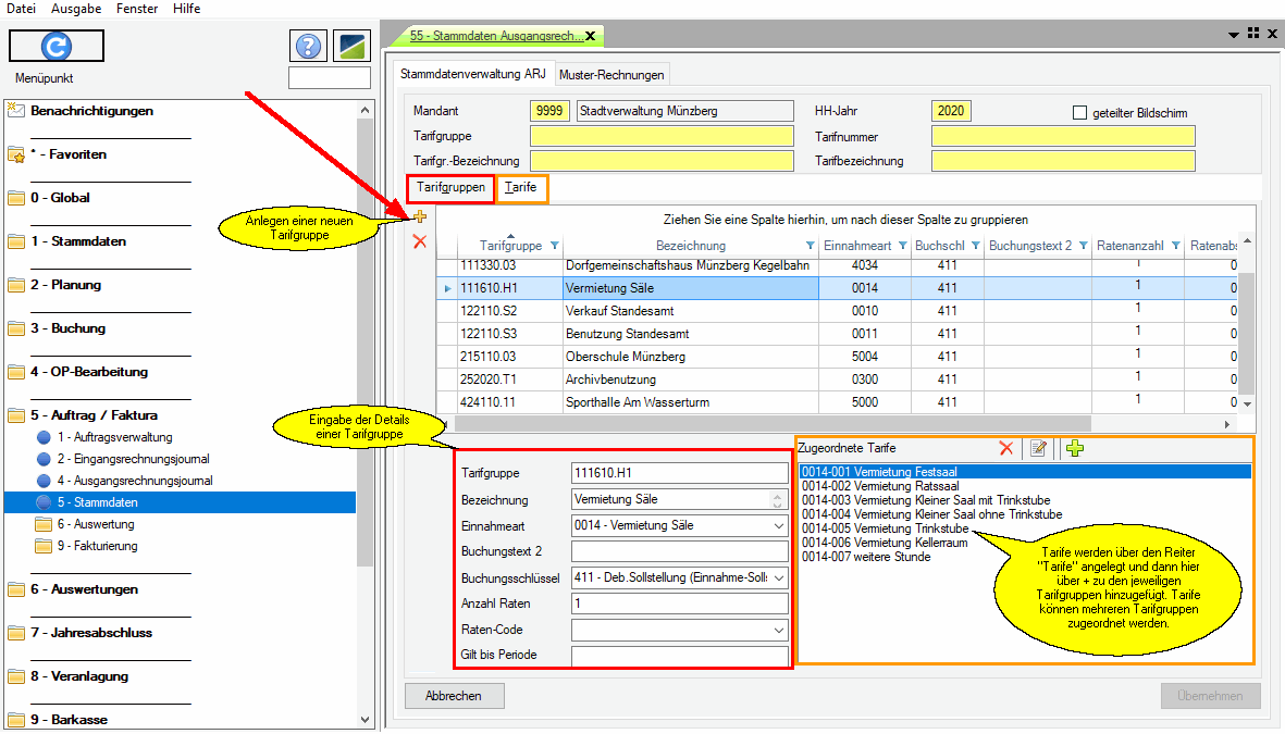 | Navigator | Aufträge / Faktura - Stammdaten - Reiter Tarifgruppen |
