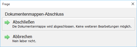 Abschließen der Dokumentenmappe, danach keine Bearbeitung oder Erstellung mehr möglich