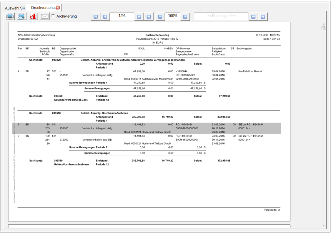Mit dieser Funktion werden zu allen Sachkonten Nachweise der Einzelbewegungen innerhalb eines Haushaltsjahres gedruckt.
