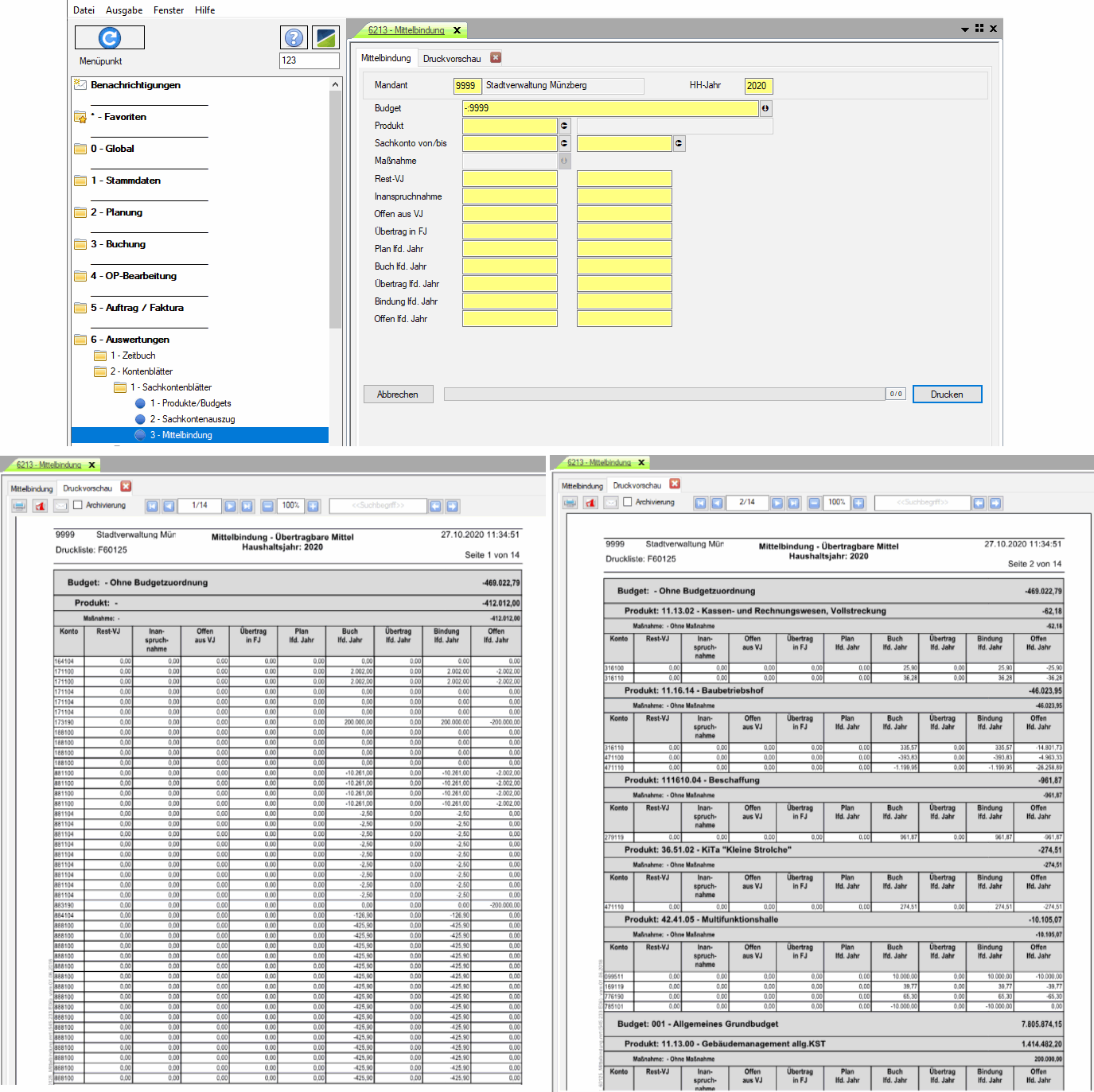 | Navigator | Auswertungen - Kontenblätter - Sachkontenblätter - Mittelbindung |