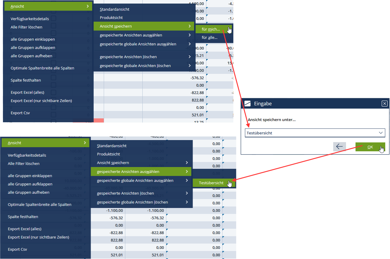 Die von Ihnen getroffenen Einstellungen in der Budgetübersicht können über Rechtsklick gespeichert werden und stehen Ihnen somit auch beim nächsten Arbeiten in der Budgetübersicht zur Verfügung.