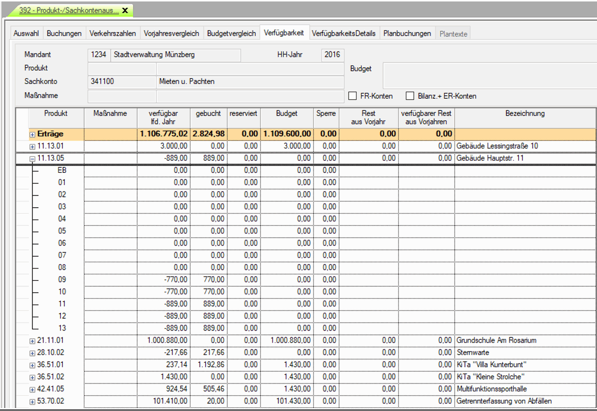 | Navigator | Buchung - Auskunft - Sachkonten - Reiter Verfügbarkeit |