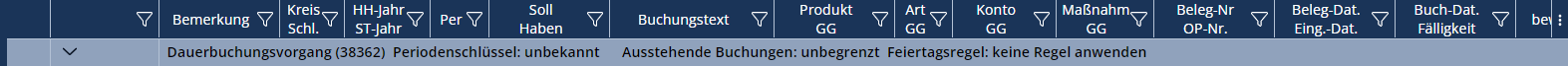 Filterung nach Dauerbuchungen einer bestimmten PK-Nummer.