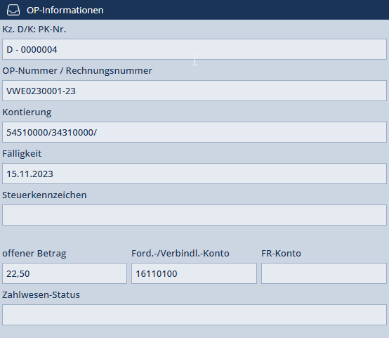 Anzeige der Ertrags- bzw. Aufwandsbuchungsstelle des gewählten OP‘s
