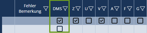Wenn das Häkchen in der Spalte DMS gesetzt ist, hängt an der Buchung sowohl die AO als auch der buchungsbegründende Beleg. Ist das Häkchen nicht gesezt, hängt an der Buchung nur die AO.
