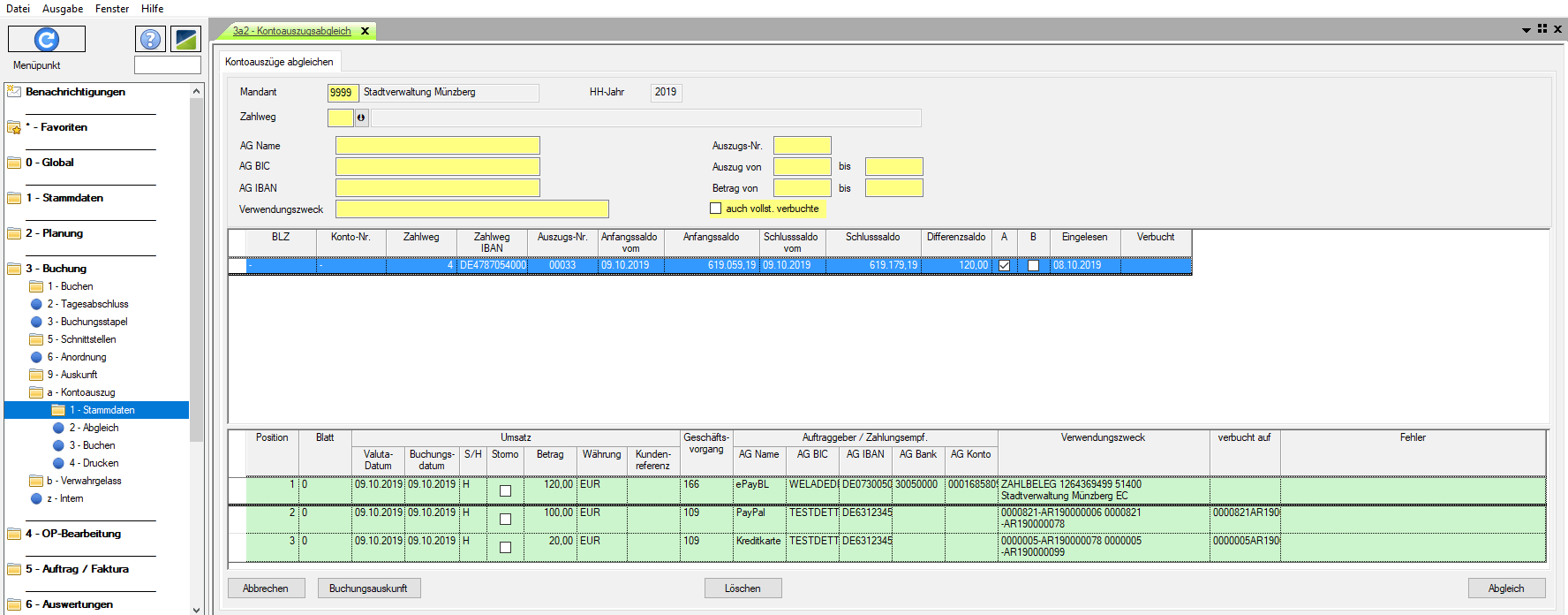 | Navigator | Buchung - Kontoauszug - Abgleich |