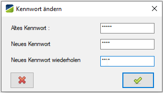 Im geöffneten Login-Fenster des Programmes ist zunächst im ersten Eingabefeld das bisherige (alte) Kennwort einzutragen, bevor im 2. Eingabefeld ein neues Kennwort vergeben werden kann. Für die Überprüfung der Schreibweise ist danach das neue Kennwort im 3. Eingabefeld noch einmal zu wiederholen und abschließend durch Klick auf den Button „