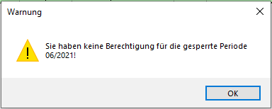 Ist die Berechtigung zur Buchung in gesperrte Jahre nicht vergeben, so wird systemseitig jegliche Buchung verhindert und es erscheint eine entsprechende Fehlermeldung.