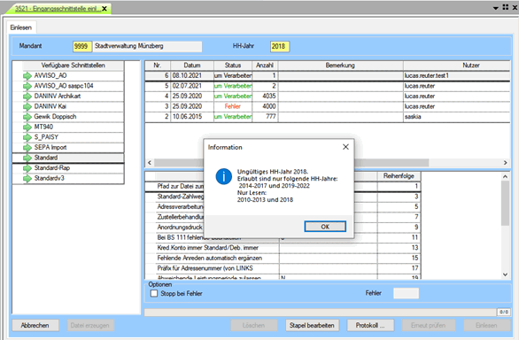 Nach dem Erscheinen der Meldung ist die jeweilige Maske nur noch im Lesemodus bedienbar.