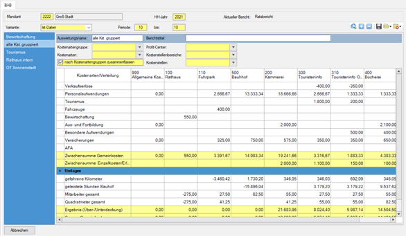 | Navigator | Kostenrechnung/Controlling - Auswertungen - Betriebsabrechnungsbogen (BAB) |