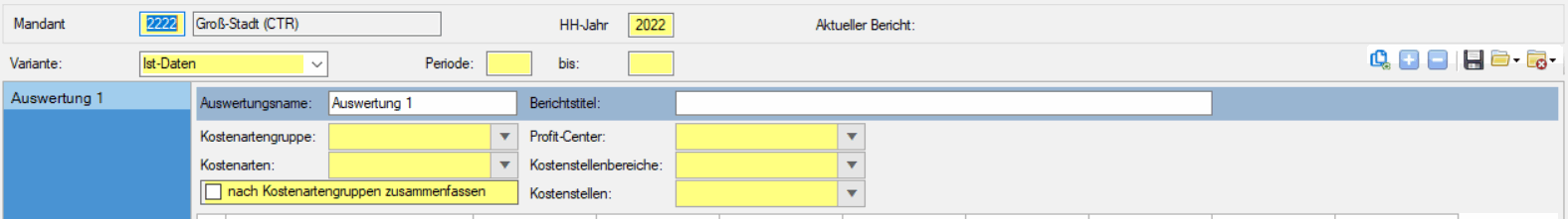 Nach Eingabe der Mandantennummer erfolgt die Auswahl des Haushaltsjahres, welches ausgewertet werden soll.
