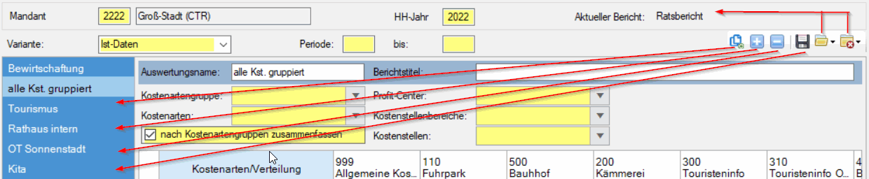 Öffnen einer vorhandenen Berichtsmappe erfolgt über das Symbol
