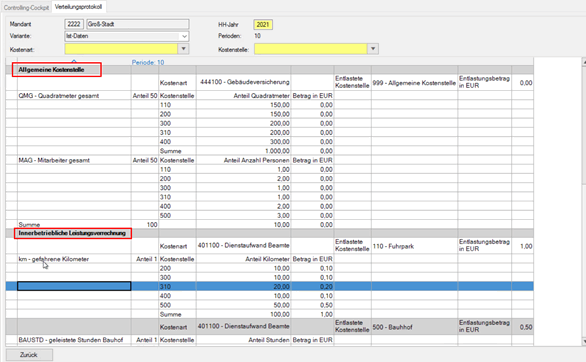 Allgemeine Kostenstelle/weitere Kostenstellen/innerbetriebliche Leistungsverrechnung