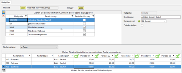 Nach Eingabe der Mandantennummer erfolgt die Auswahl des zu bearbeitenden Haushaltsjahres. DasAnlegen einer neuen Maßgröße erfolgt überdas Symbol
