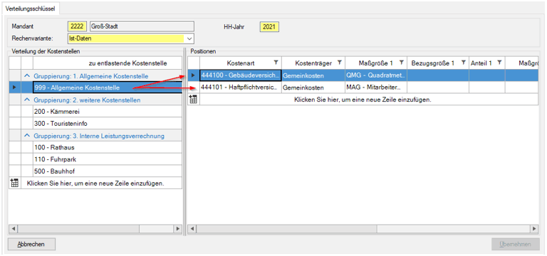 Mit Hilfe der Kostenartenverteilung Allgemeine Kostenstelle kann eine Definition zur Verteilung pro Kostenart erfolgen.