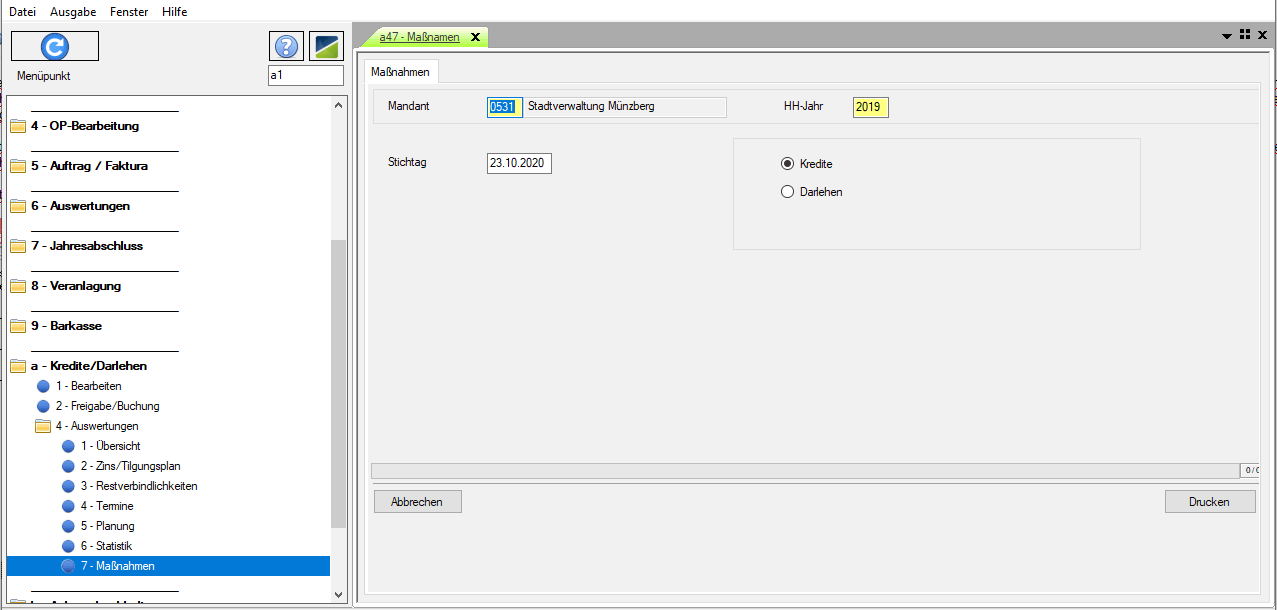 | Navigator | Schulden/Darlehen - Auswertungen - Maßnahmen |
