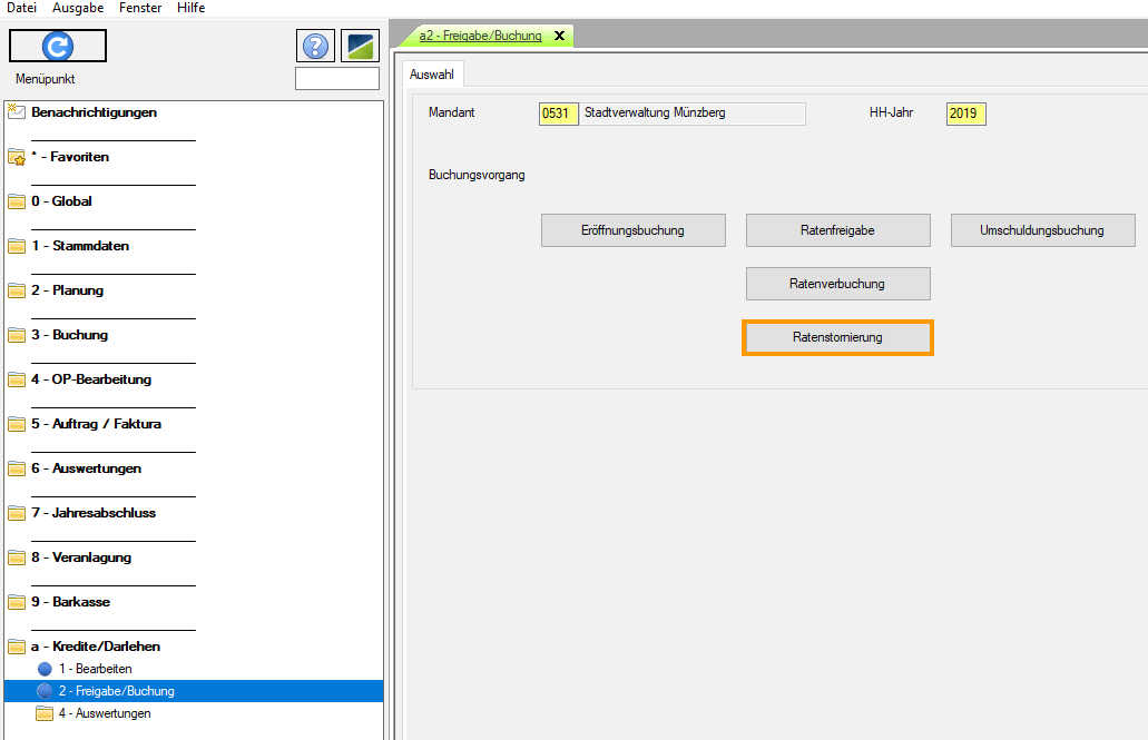 | Auswahl Buchungsvorgang "Ratenstornierung" |