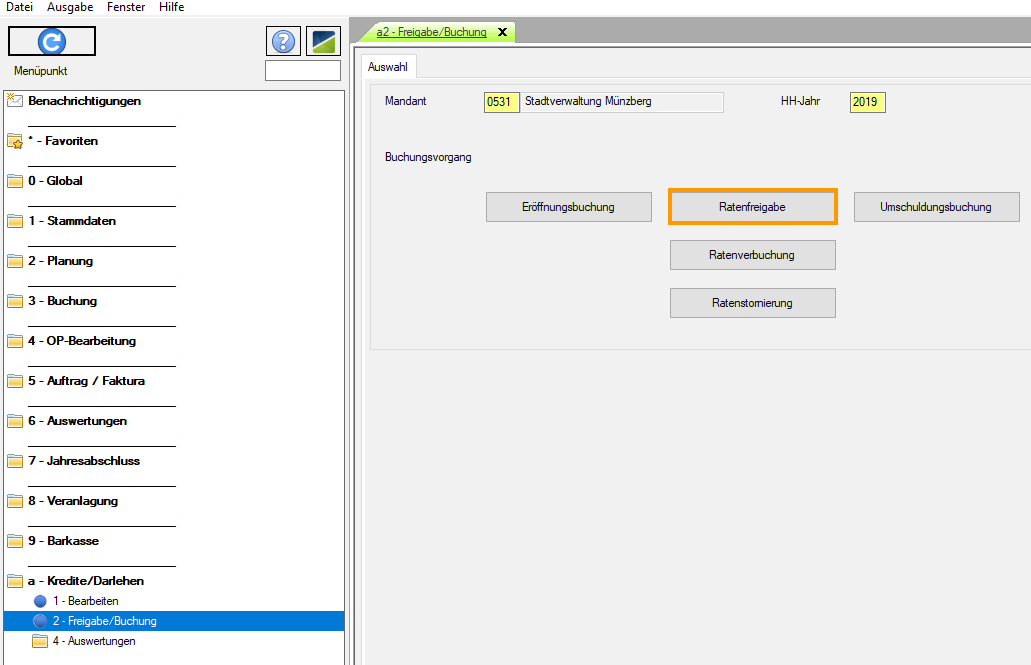 | Auswahl Buchungsvorgang "Ratenfreigabe" |