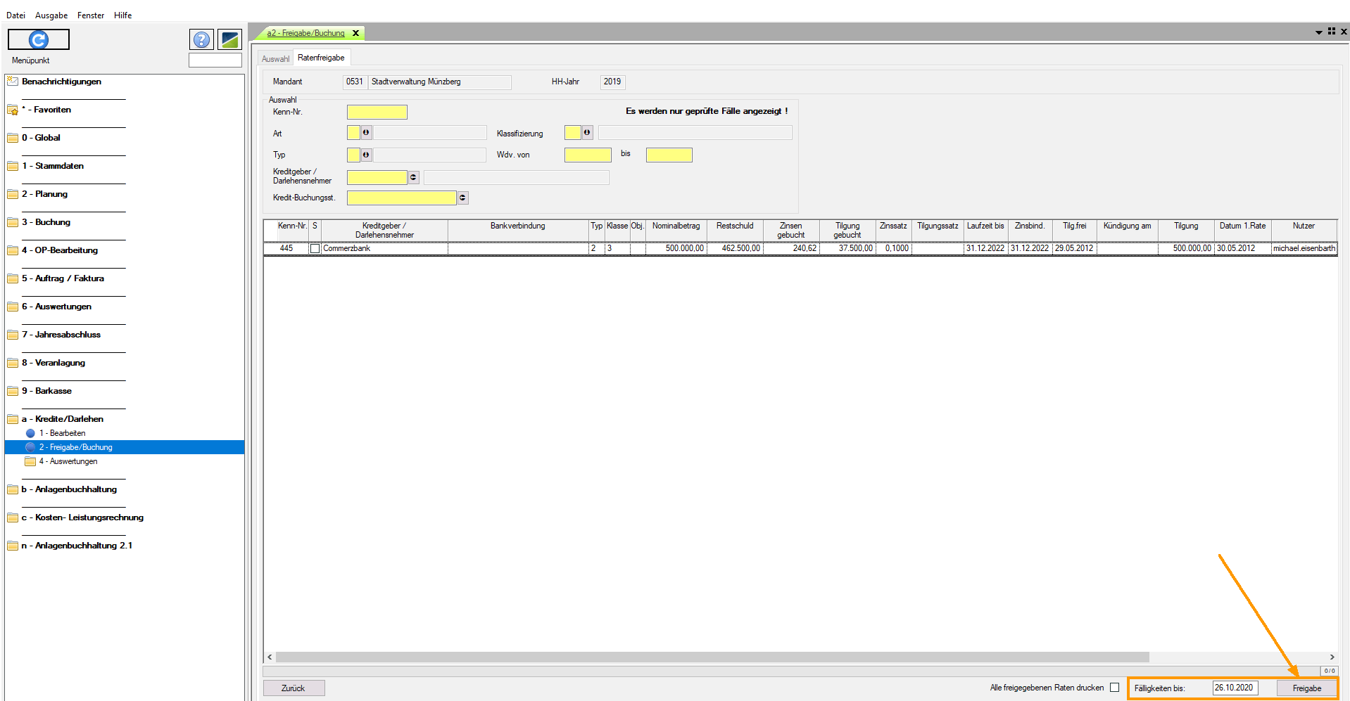 | Navigator | Kredite/Darlehen - Freigabe/Buchung | |