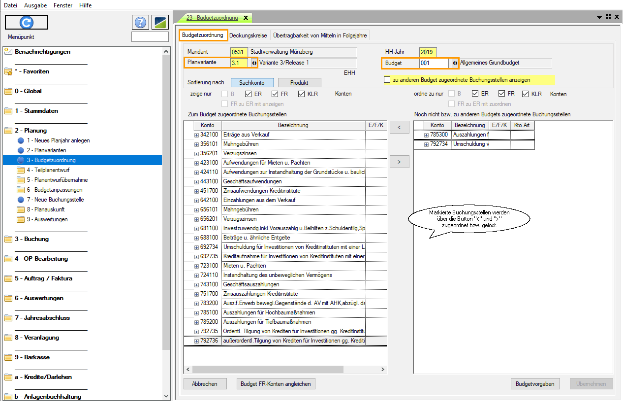 Mit der Budgetzuordnung aller Planbuchungsstellen wird ein wichtiger Grundstein für das spätere Buchungsgeschäft gelegt.
