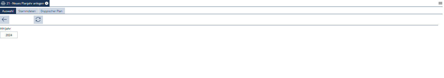 | Navigator:Registerkarte: | Planung - Neues Planjahr anlegenAuswahl |