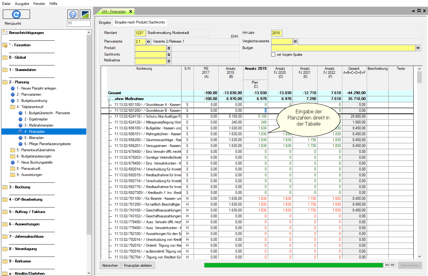 Wie sind die Planzahlen für die Finanzrechnung zu erfassen ?