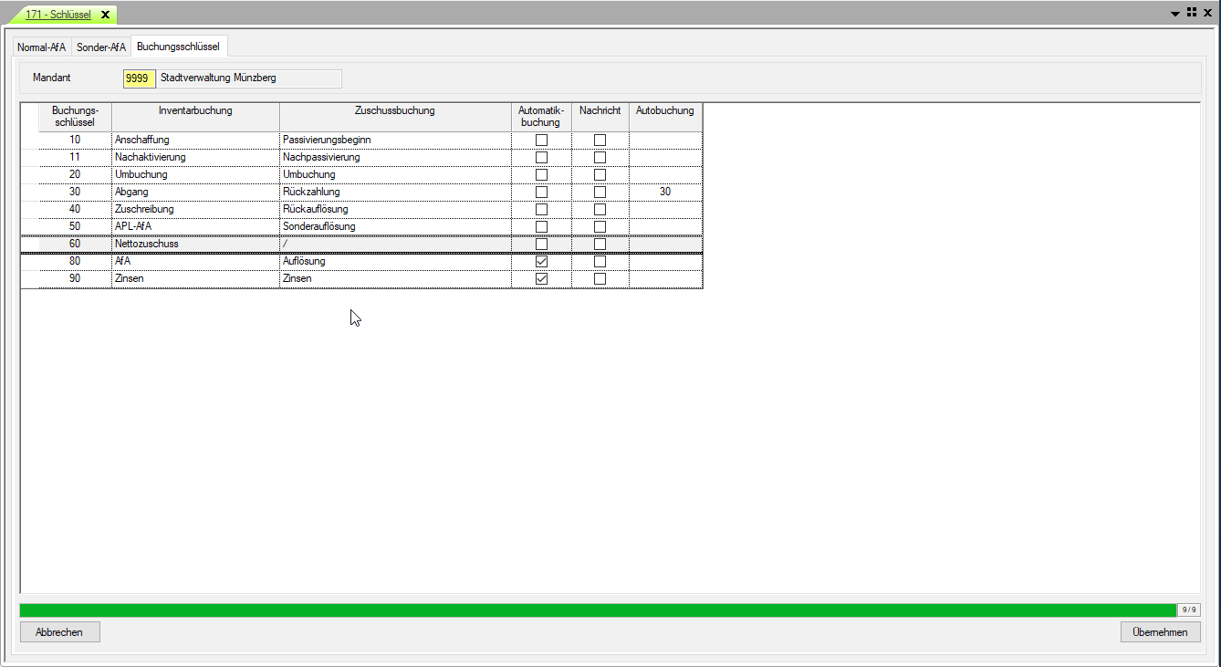 | Navigator | Stammdaten - Anlagenbuchhaltung - Schlüssel | |