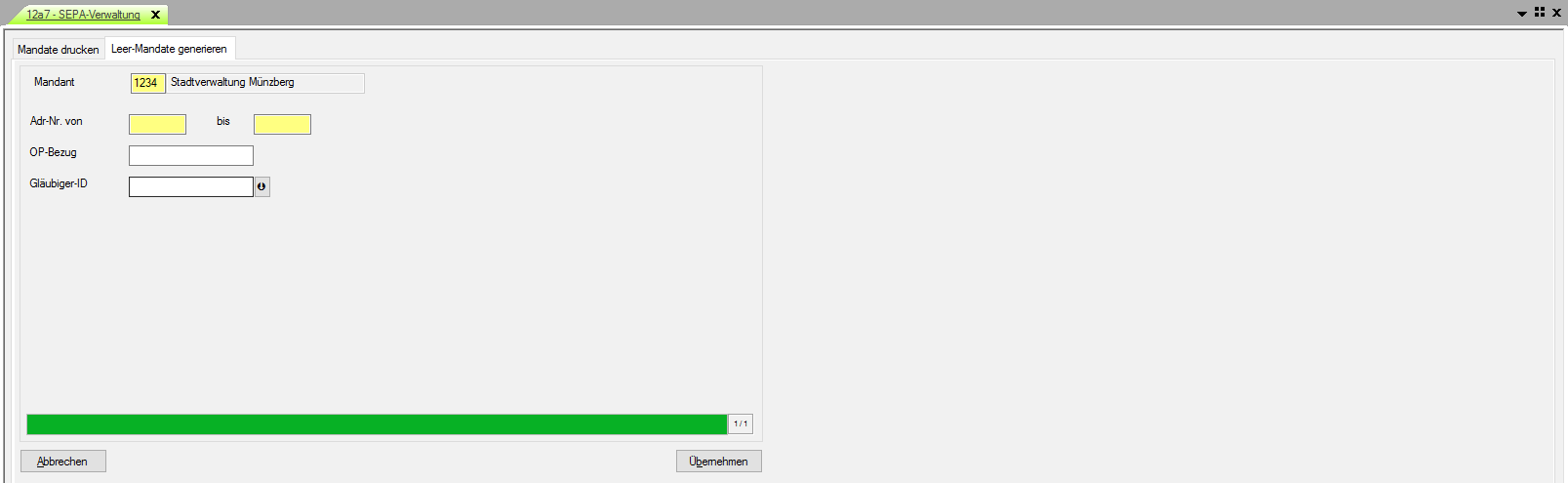 Vor der maschinellen Generierung von Mandaten stellen Sie bitte sicher, dass Sie Ihre GläubigerID in der Mandantenverwaltung hinterlegt haben.