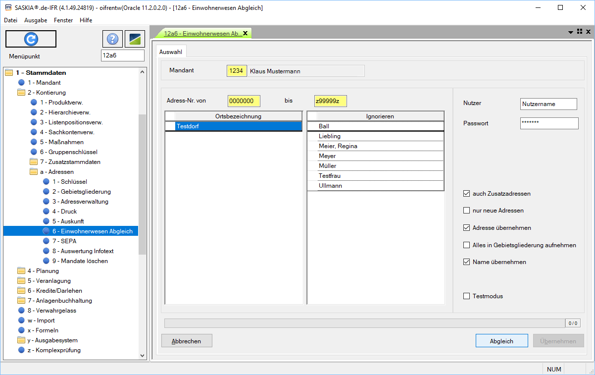 | Navigator | Stammdaten - Kontierung - Adressen - Einwohnerwesen Abgleich |