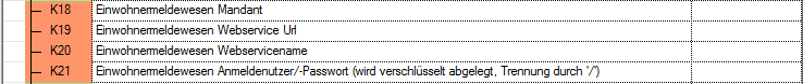 Für den Einwohnerwesen-Abgleich greift SASKIA®.de-IFR über eine Webservice-Schnittstelle auf eine zentrale Datenbank (MESO) zu. Zu diesem Zweck müssen die Schalter K18 bis K21 in den Stammdaten des dafür berechtigten Mandanten ( siehe Menü 11 ) vollständig und korrekt hinterlegt sein. Über fehlende oder falsche Einstellungen informiert eine Info-Box. Es muss eine Internetverbindung bestehen.