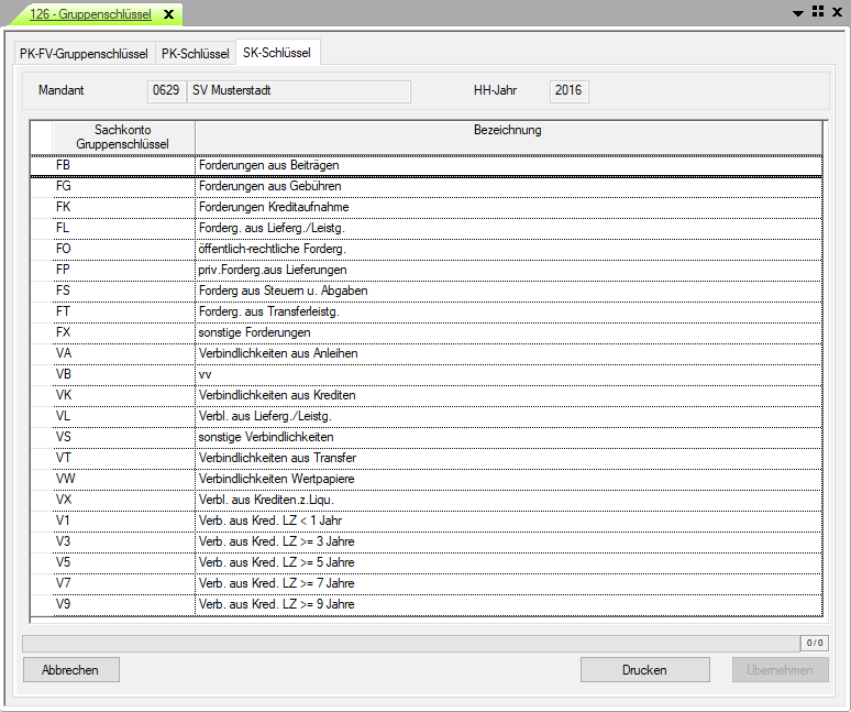 Anzeige des unter PK-FV-Gruppenschlüssel eingegebenen Mandanten