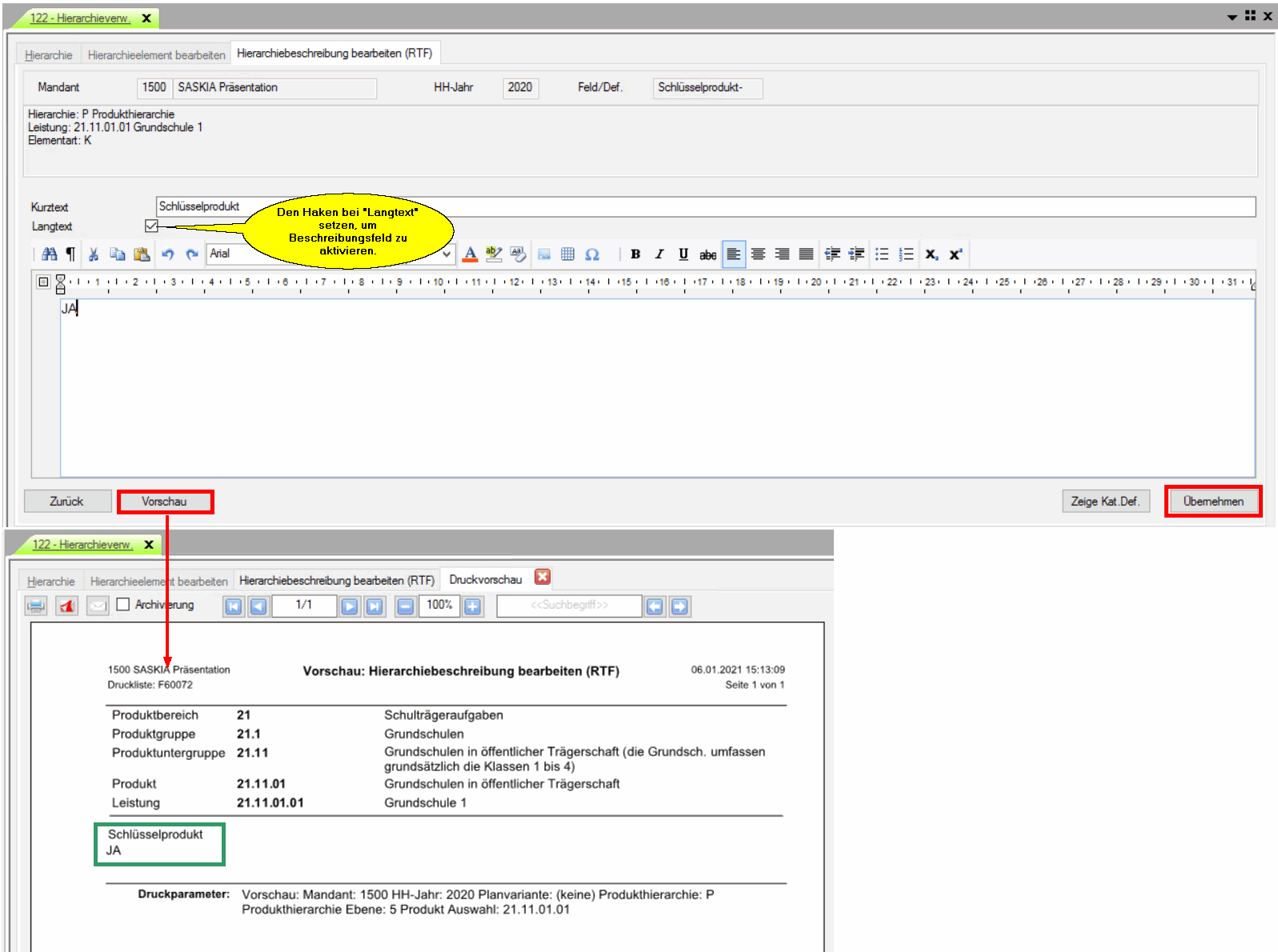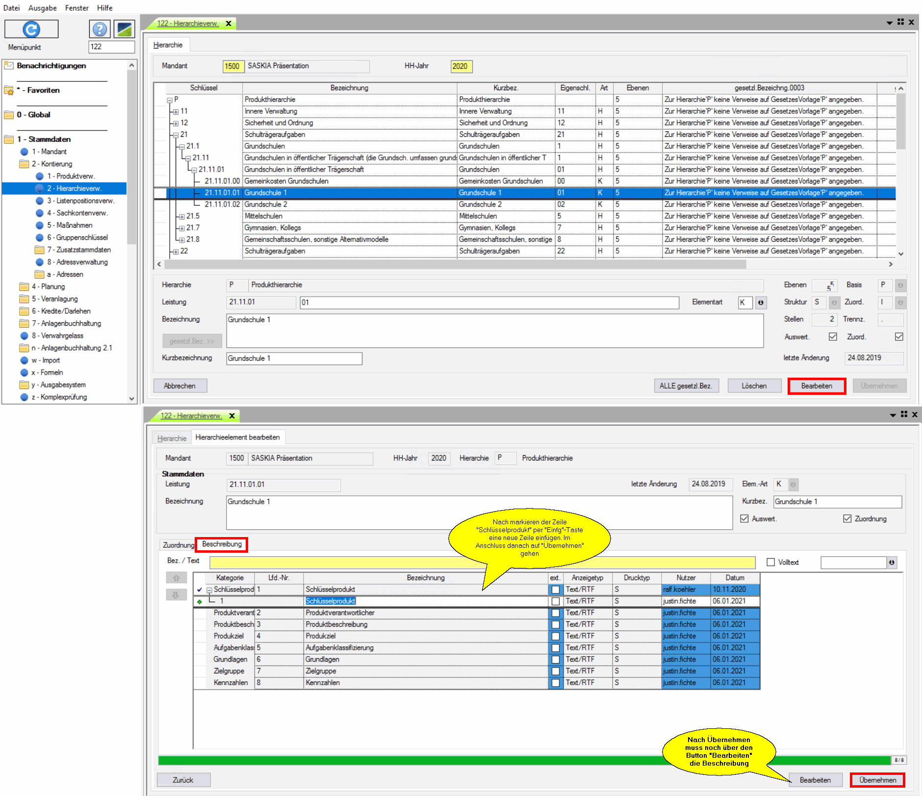 Die Eingaben werden gespeichert, der Beschreibungstext für das Produkt bzw. die Hierarchieebene wird hinterlegt