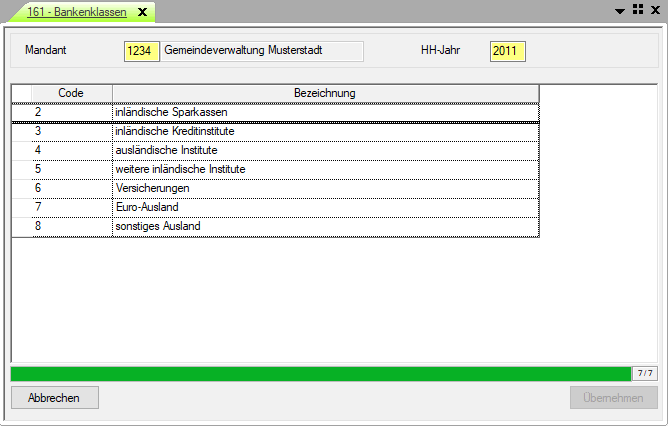 | Navigator | Schulden/Darlehen - Stammdaten - Bankenklassen |